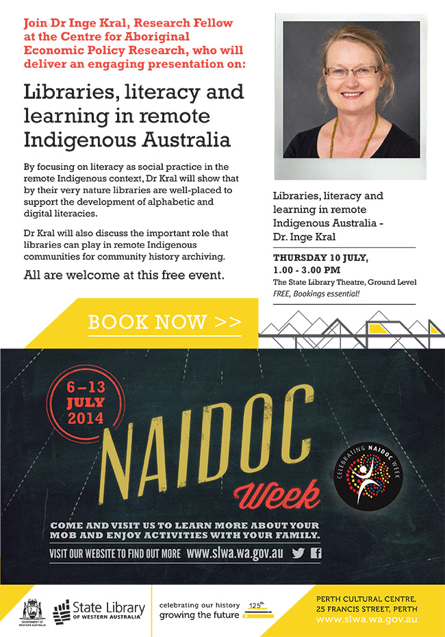 Subject: [WAIN] Libraries, literacy and learning in remote Indigenous Australia [Free NAIDOC event]