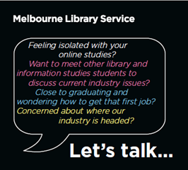 The event below is for students in Library and Information Studies who are studying online across Australia. It is a chance to get together face to face with other students and share what it is like to be studying in this discipline off-campus.