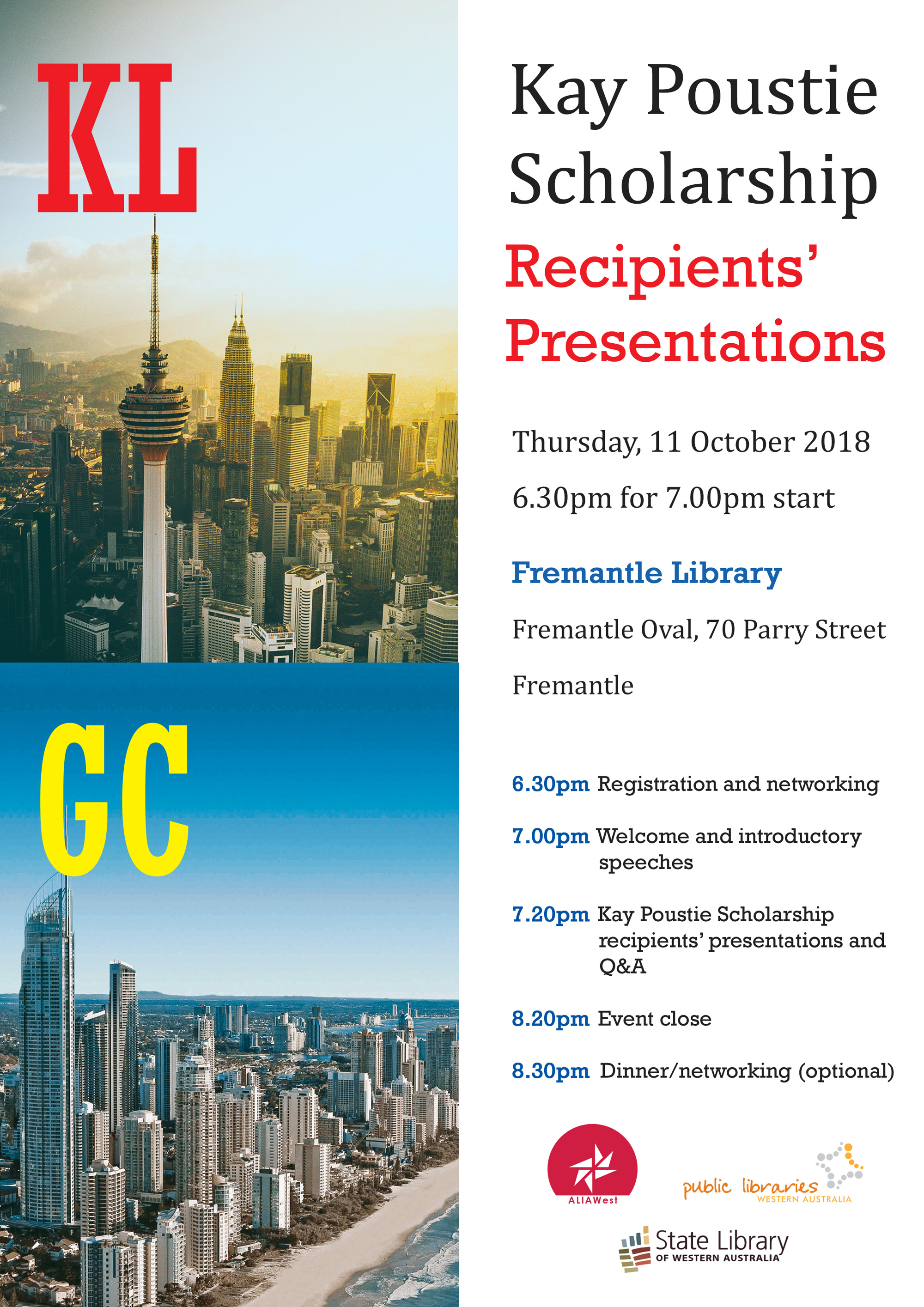 I will be attending this event at the temporary Freo Library so come along and listen to those scholarship recipients - and do some networking!