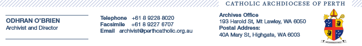 From: Archivist <archivist at perthcatholic.org.au>