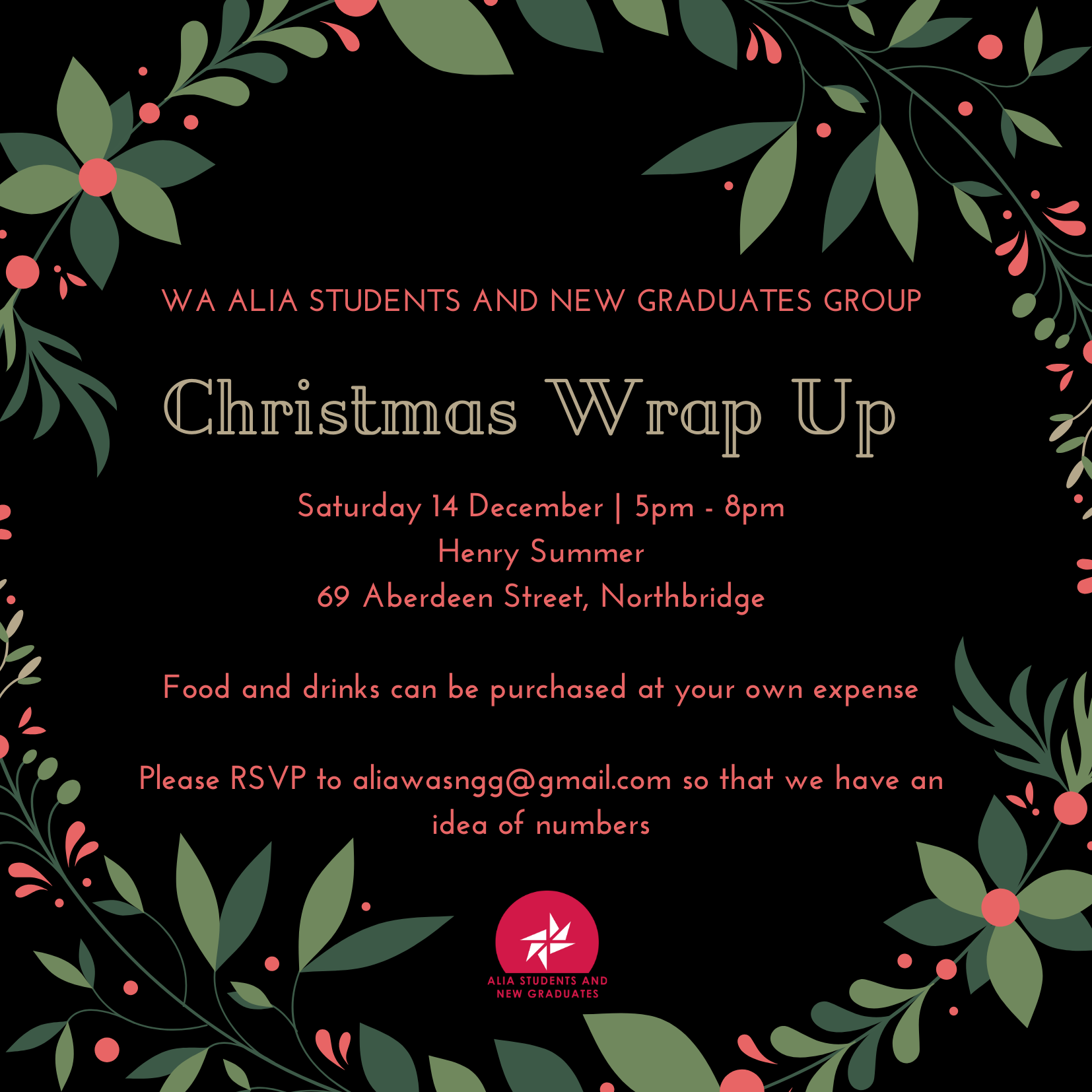 The WA branch of ALIA Students and New Graduates Group Christmas Wrap Up event is coming up soon, all welcome.