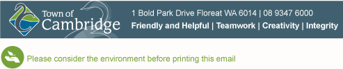 [Town of Cambridge, 1 Bold Park Drive Floreat WA 6014 | 08 9347 6000]