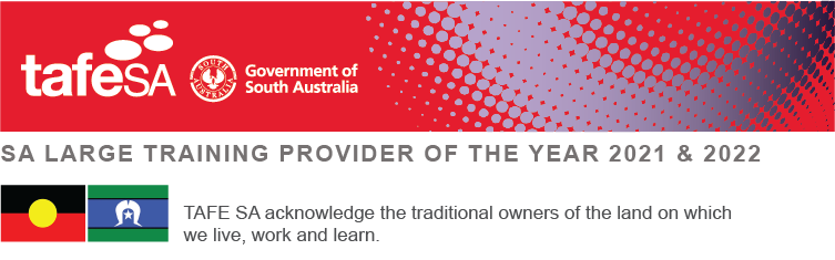 [SA Large Training Provider of the Year 2021 & 2022. Acknowledgement of Country: TAFE SA acknowledge the traditional owners of the land on which we live, work and learn.]
