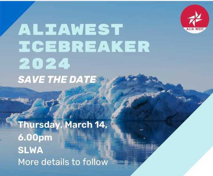The ALIA West Group are planning a physical networking event at State Library Western Australia on Thursday, March 14th at 6:00pm (AWST).