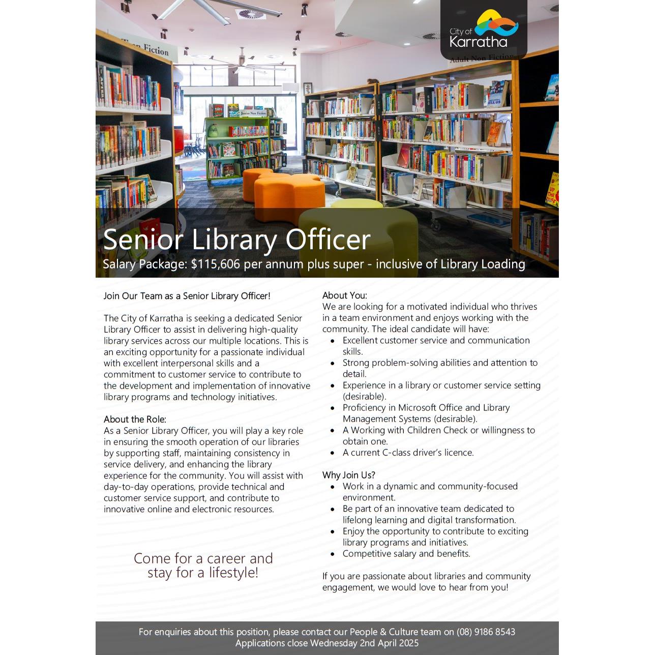 Subject: [WAIN] Employment Opportunity - Senior Library Officer - City of Karratha